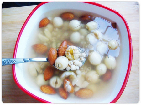 杏仁最好与薏米按1:5的比例一起熬粥,温热时喝;和猪肺炖汤,也有滋养缓和之效。